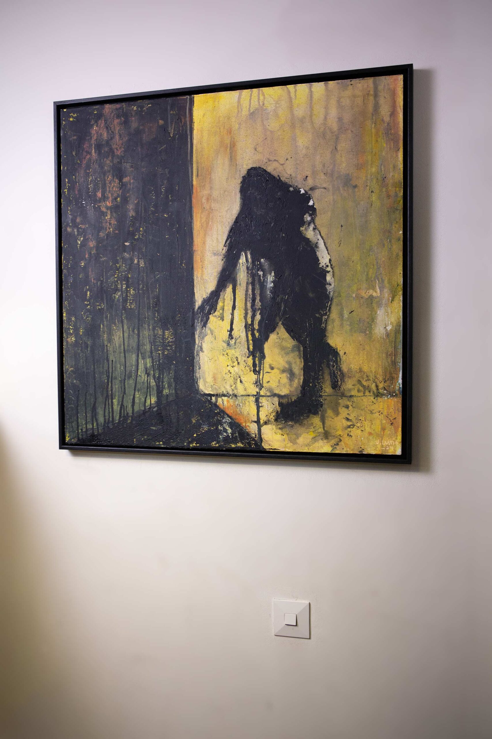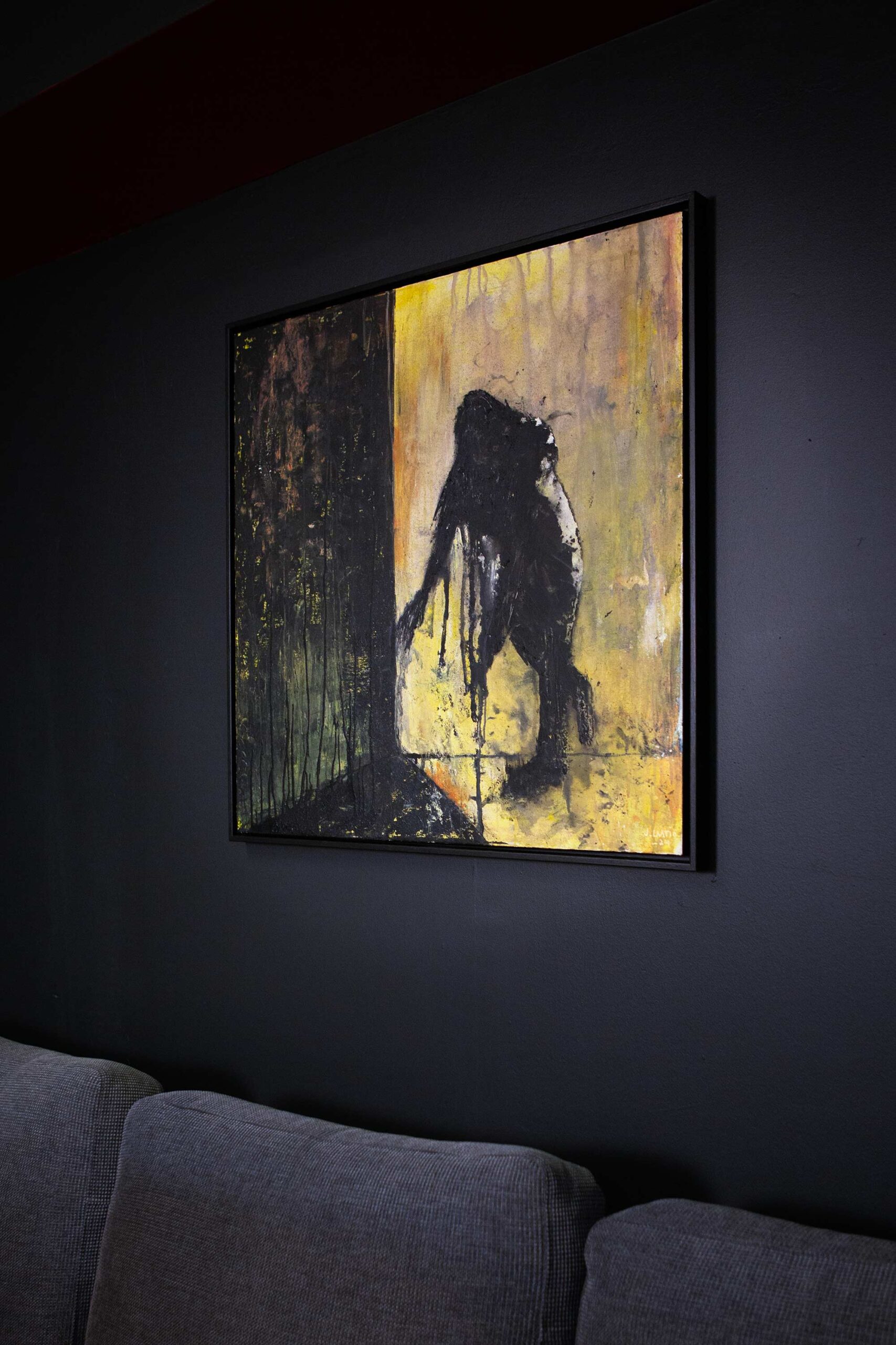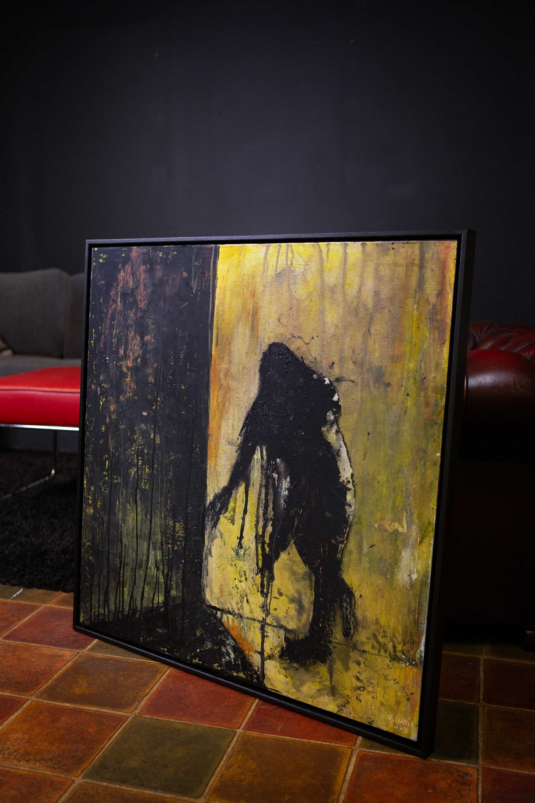 Custom built and painted wooden frame included. Total size of the art piece with the frame is 84 x 84 x 3,5 cm (33 x 33 x 1,4 in). If you would prefer a certain color or tone for the frame let me know!