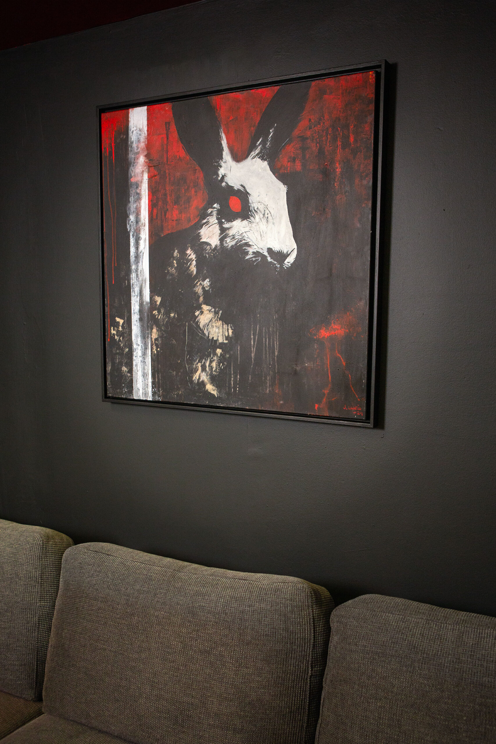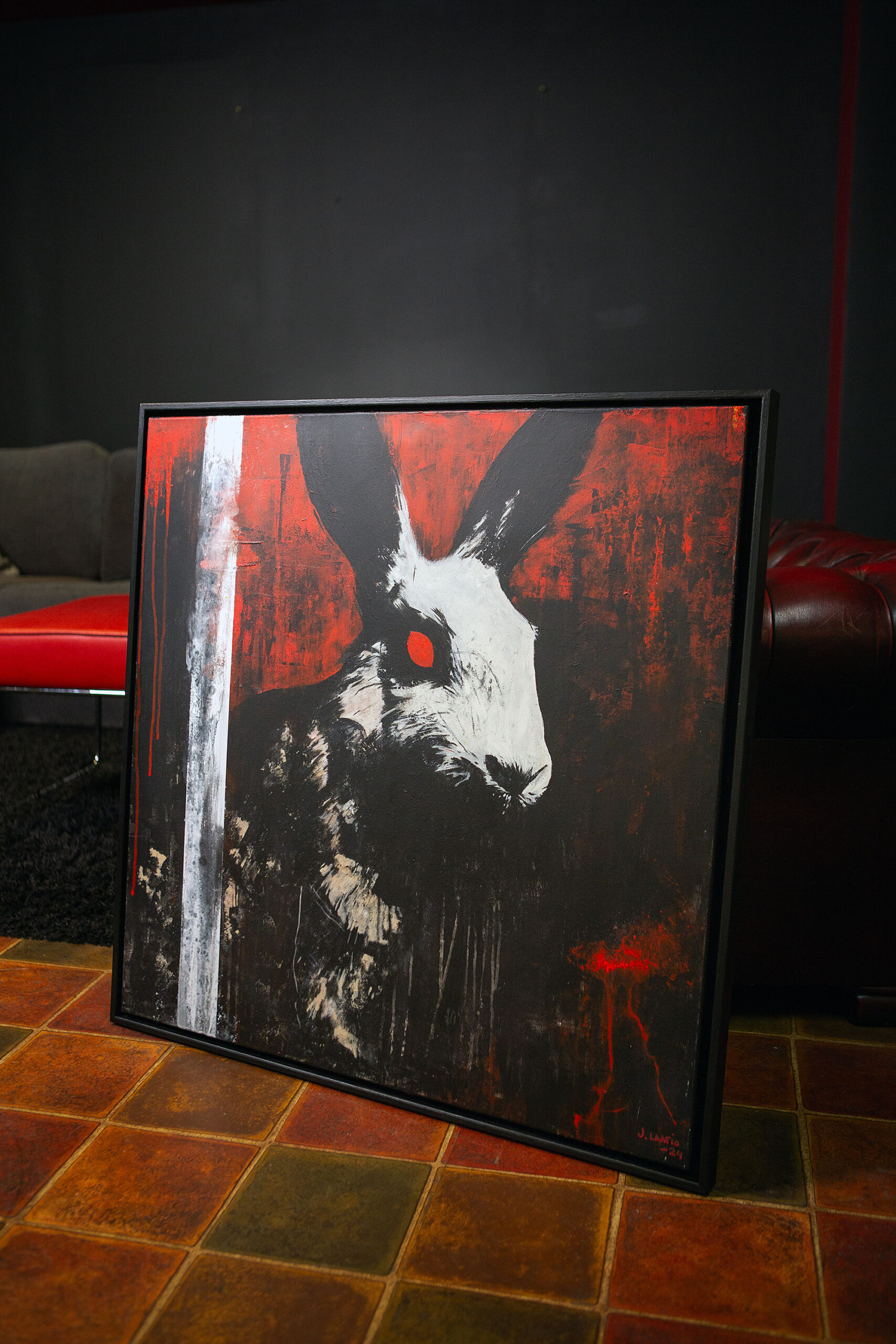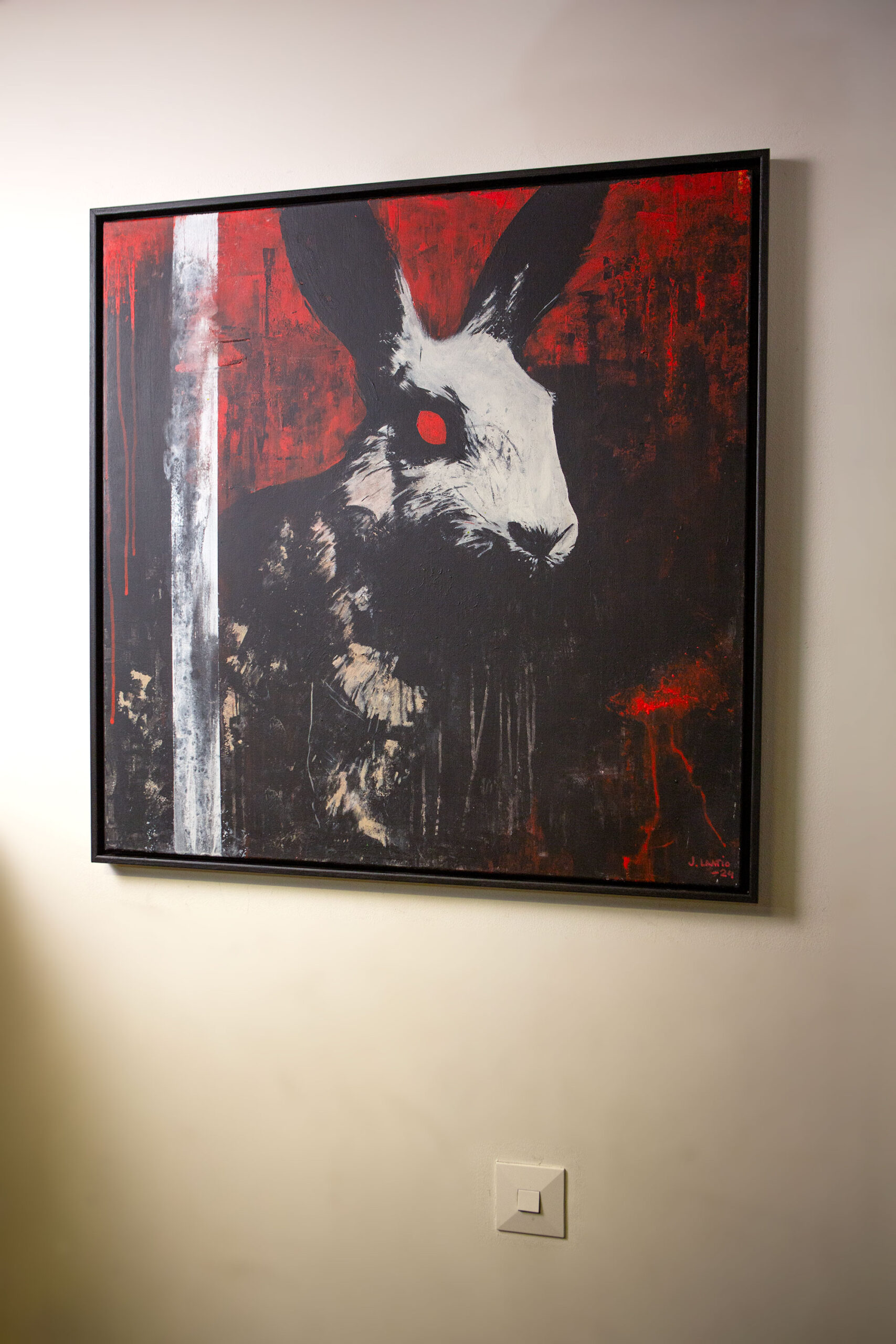 Custom built and painted wooden frame included. Total size of the art piece with the frame is 84 x 84 x 3,5 cm (33 x 33 x 1,4 in). If you would prefer a certain color or tone for the frame let me know!