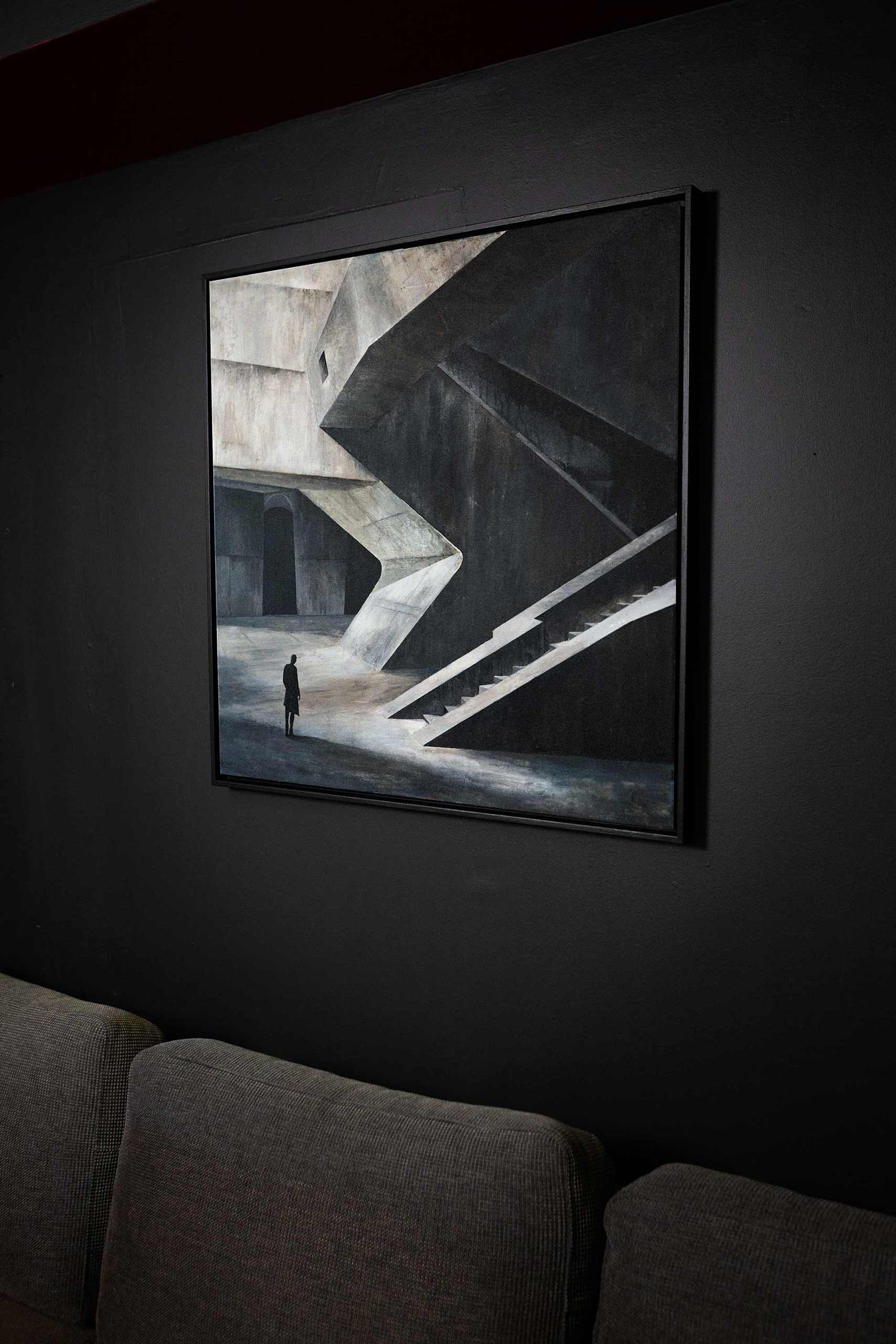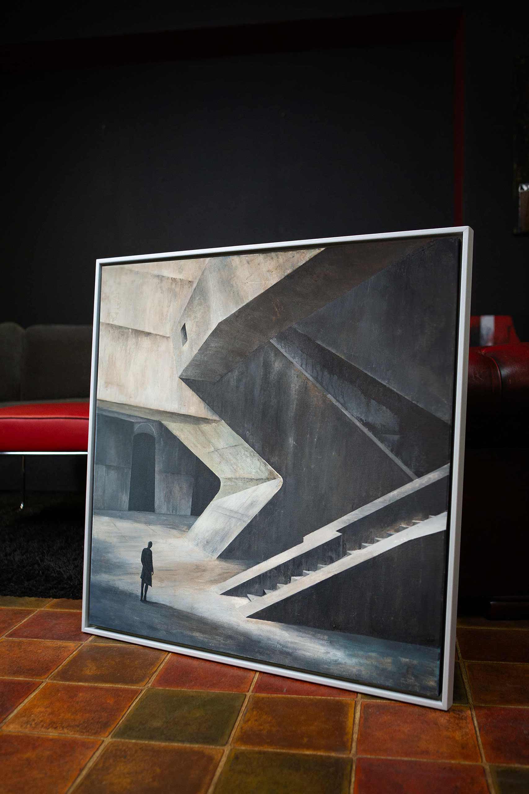 Custom built and painted wooden frame included. Total size of the art piece with the frame is 84 x 84 x 3,5 cm (33 x 33 x 1,4 in). If you would prefer a certain color or tone for the frame let me know!