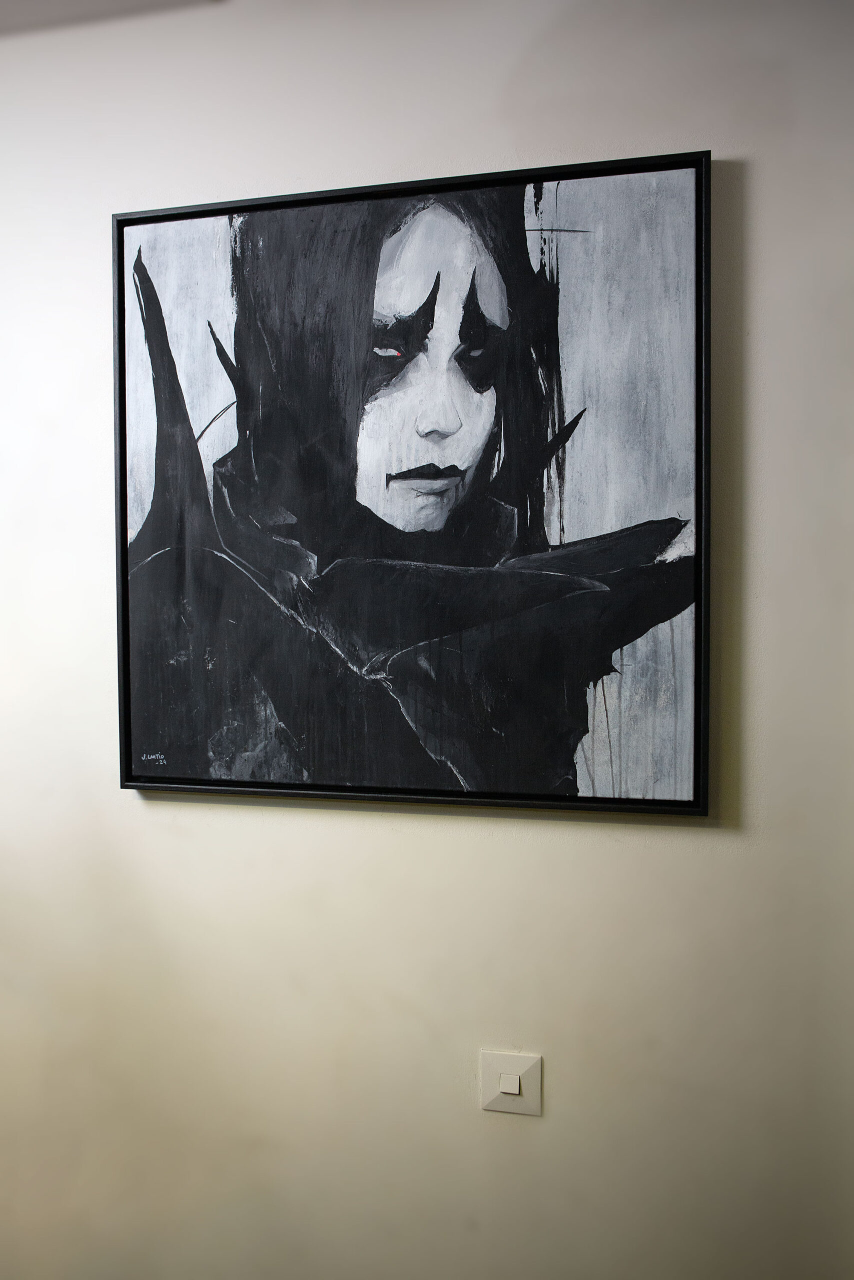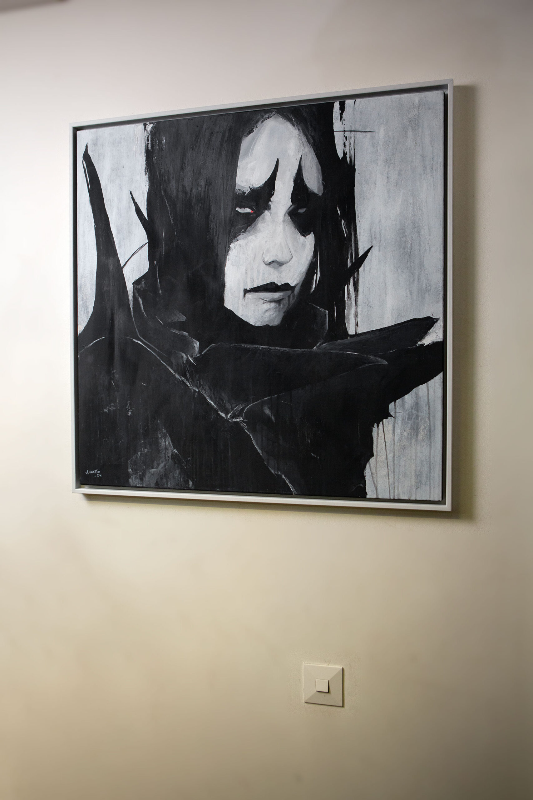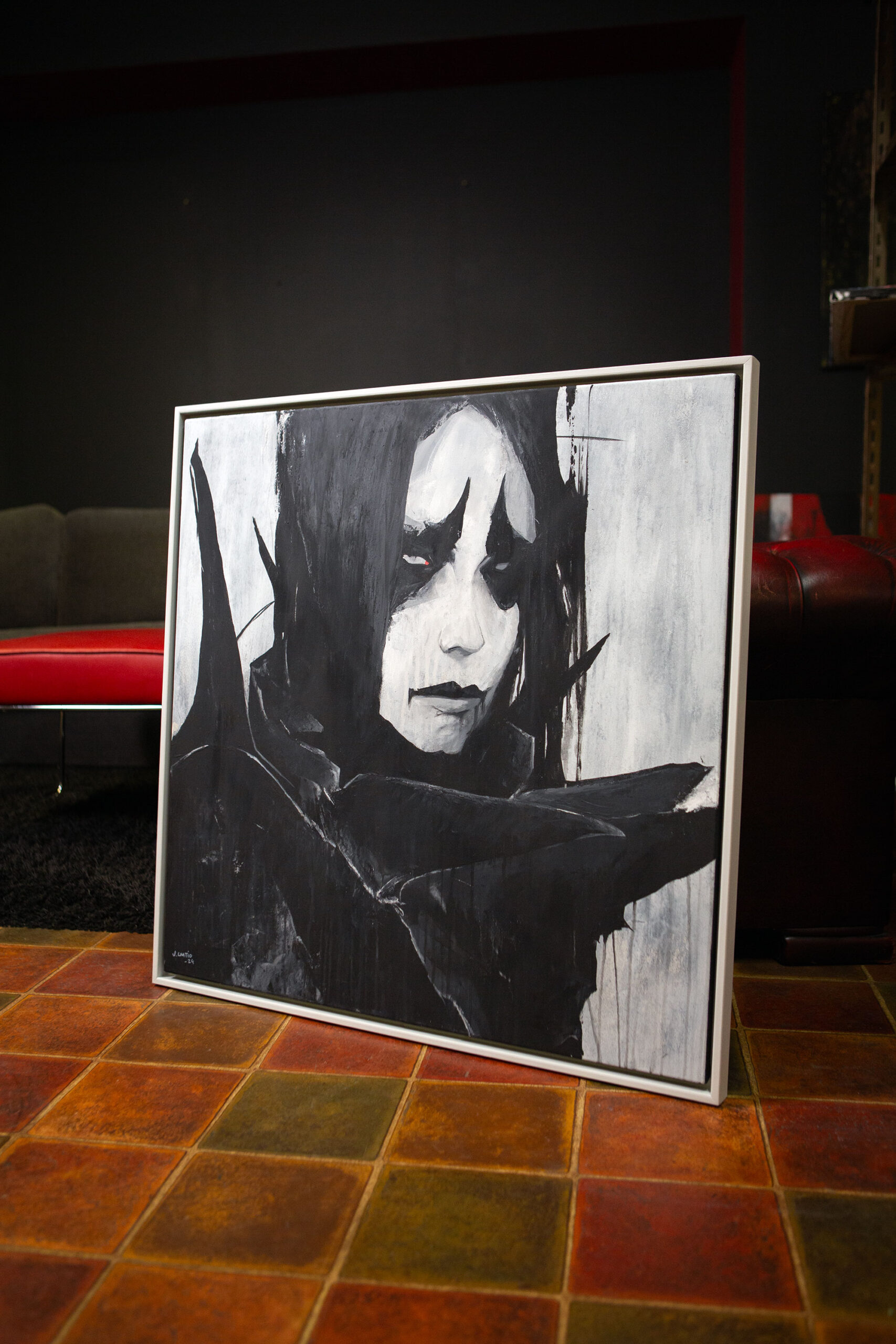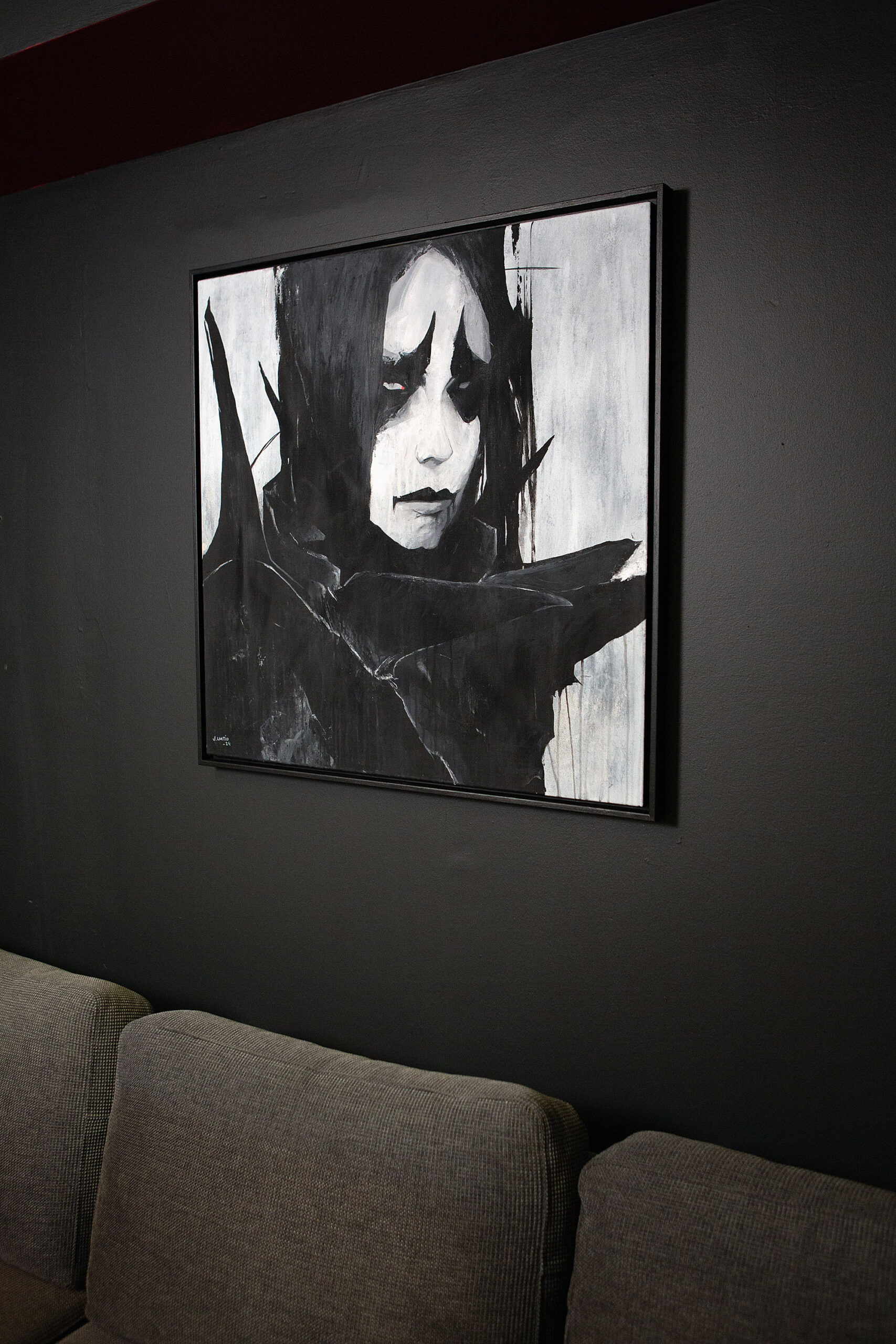 Custom built and painted wooden frame included. Total size of the art piece with the frame is 84 x 84 x 3,5 cm (33 x 33 x 1,4 in). If you would prefer a certain color or tone for the frame let me know!